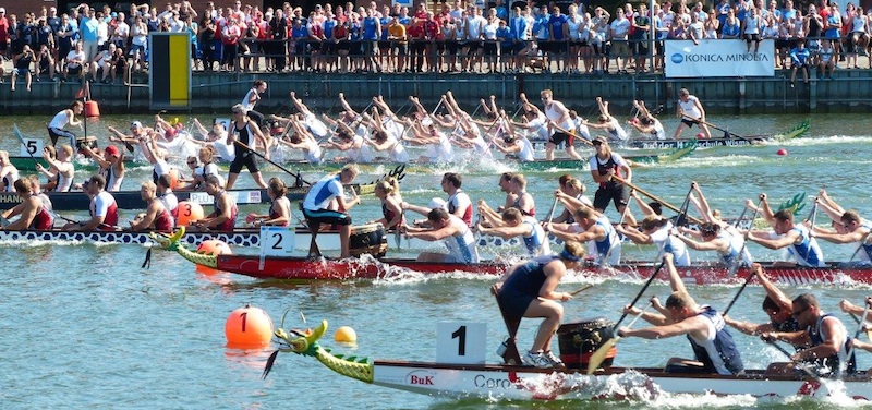 Drachenboot-Paddeln ist der ultimative Mannschaftssport im Bereich des Canoeing. Der Slogan „ALLE IN EINEM BOOT“ findet hier vollends seine Bedeutung. Ausgeprägter Teamgeist läßt das mit bis zu 20 Aktive besetzte knapp 13m lange Drachenboot durchs Wasser schnellen. Die bestimmenden Klänge der Trommel geben hierzu den Takt vor. Ein/e Steuermann/-frau im Heck hält dabei den Kurs.